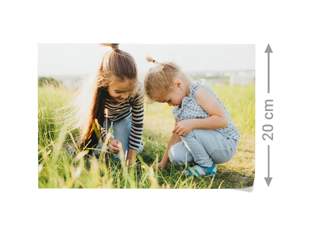 Beim 20er Format beträgt die Höhe deiner Abzüge immer 20 cm – die Länge variiert je nach Seitenverhältnis. Wir fertigen dein Poster im passenden Format, damit dein Bild vollständig erhalten bleibt.